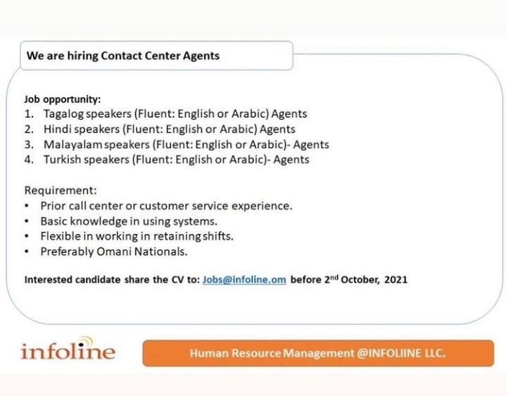 مطلوب موظف مركز اتصال ف شركة إنفولاين.