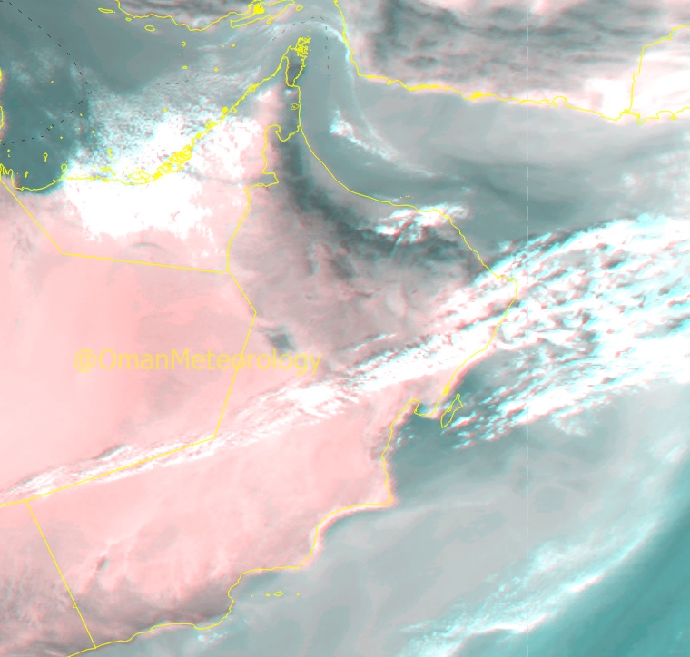 تدفق سحب عالية الى متوسطة على محافظات جنوب الشرقية والوسطى وتواجد السحب المنخفضة على أجزاء من محافظتي مسقط وجنوب الباطنة