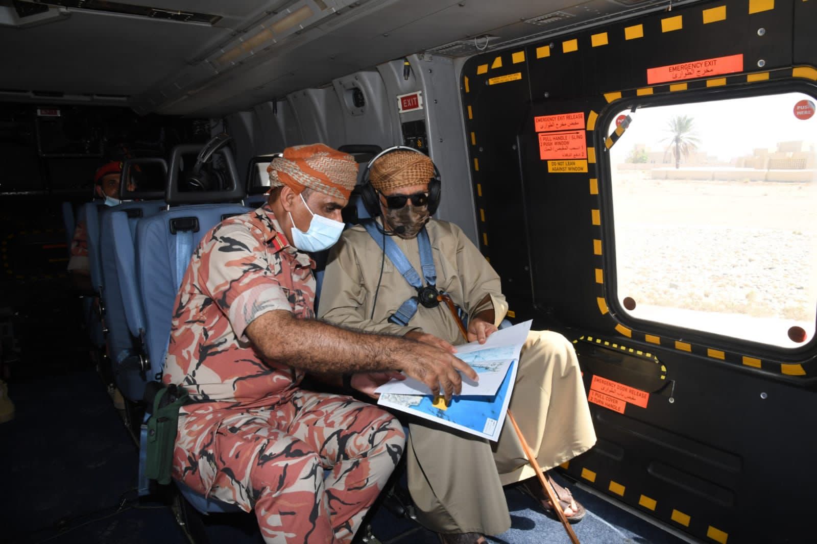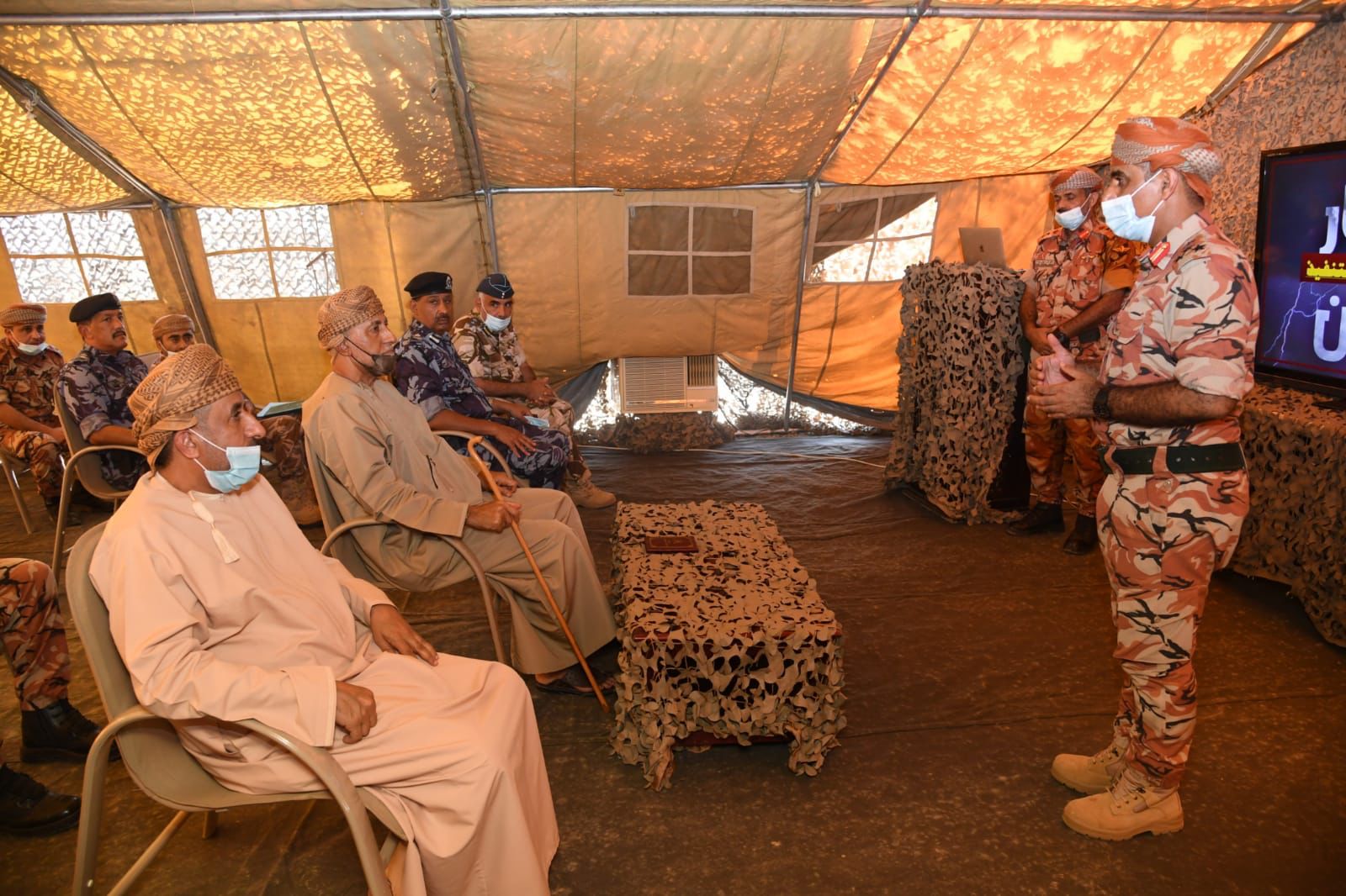 والجهود المبذولة لخدمة المواطنين والمقيمين من خلال عمليات الدعم والإسناد التي تقوم بها قوات السلطان المسلحة ضمن خطط اللجنة العسكرية الرئيسية لإدارة الحالات الطارئة.