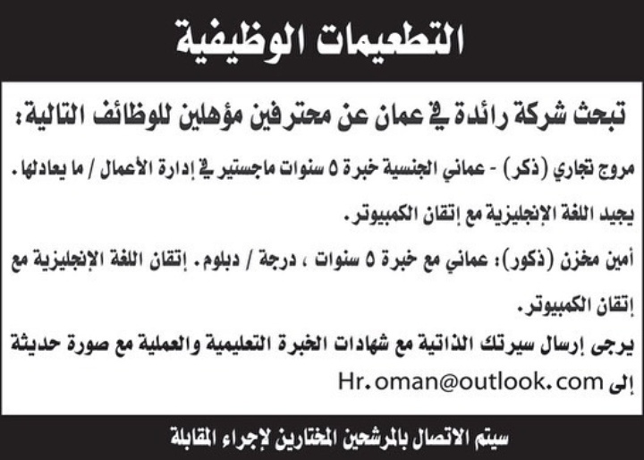 لتصفح المزيد من جديد الوظائف و التدريب بالسلطنة اضغط هنا