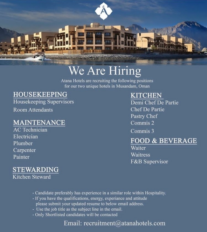 أعلنت مجموعة فنادق أتانا عن رغبتها بتعيين لديها :