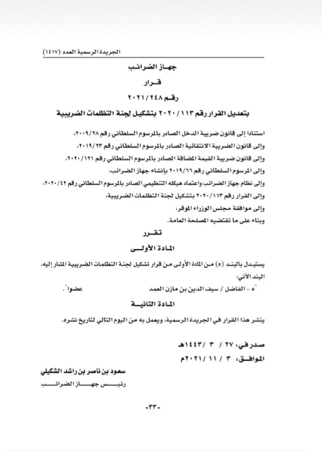 أصدر جهاز الضرائب قرارا رقم 248 لسنة 2021 لتعديل القرار رقم 113 لسنة 2020 بتشكيل لجنة التظلمات الضريبية.