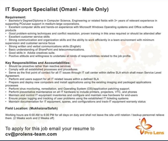 ٣. اخصائي دعم تكنولوجيا المعلومات (عماني – ذكر).