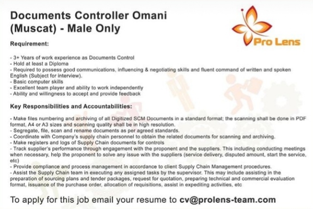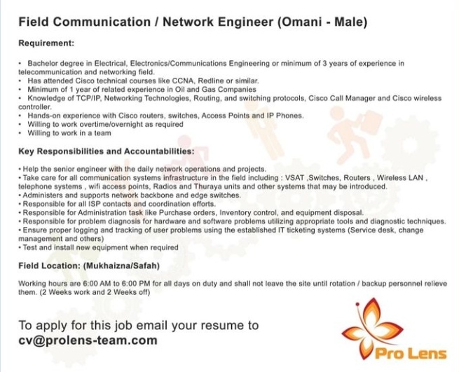 أعلنت شركة برولينس عن رغبتها بتعيين لديها :