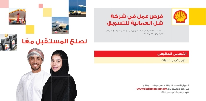 أعلنت شركة شل العمانية للتسويق عن رغبتها بتعيين لديها كيميائي مختبرات.