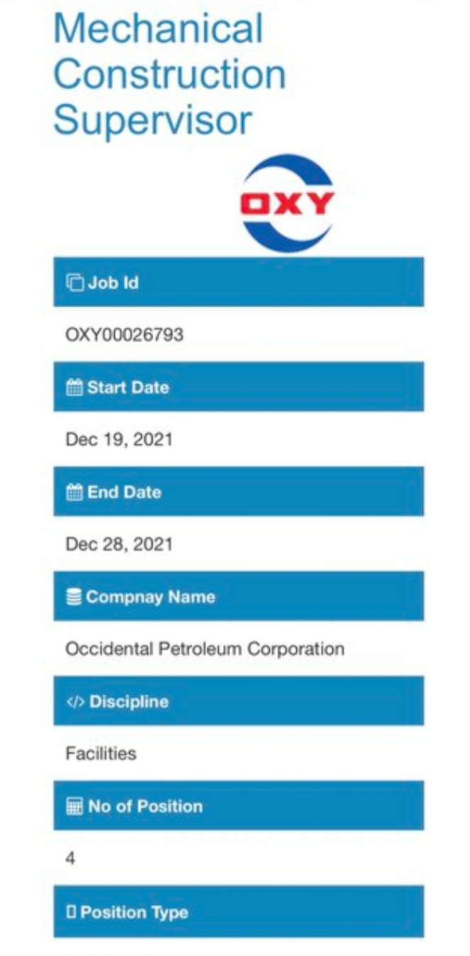 أعلنت شركة أوكسيدينتال عمان عن توفر شواغر جديدة لديها لمن لديهم الخبرة في المجال :