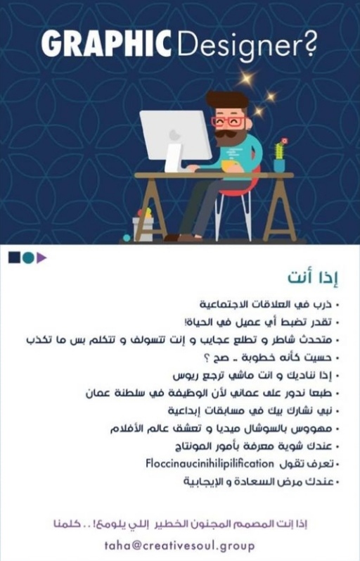 أعلنت شركة في مجال التصميم عن رغبتها بتعيين لديها مصمم جرافيك.