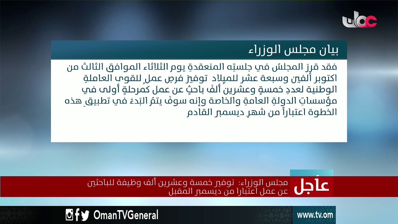 بيان صادرعن #مجلس الوزراء: توفير 25000 فرصة عمل للباحثين في قطاعين العام و الخاص ابتداء من ديسمبر