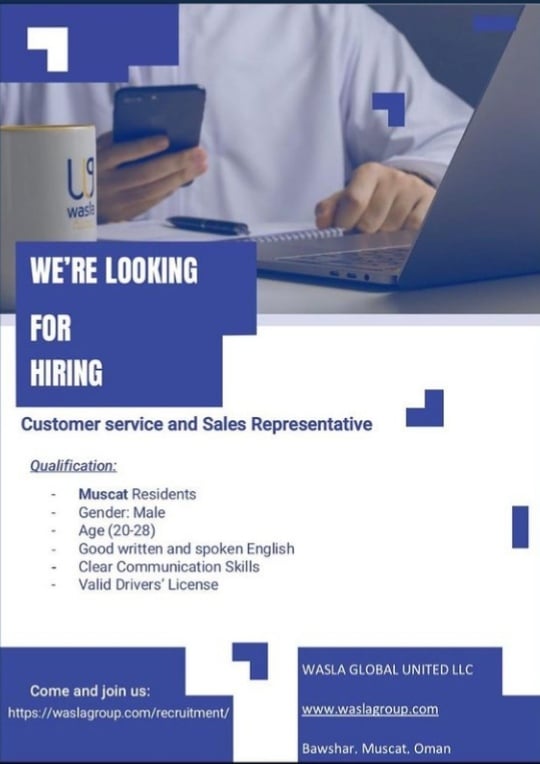 أعلنت شركة الوصلة العالمية المتحدة عن رغبتها بتعيين لديها موظف في مجال خدمة العملاء ومندوب المبيعات