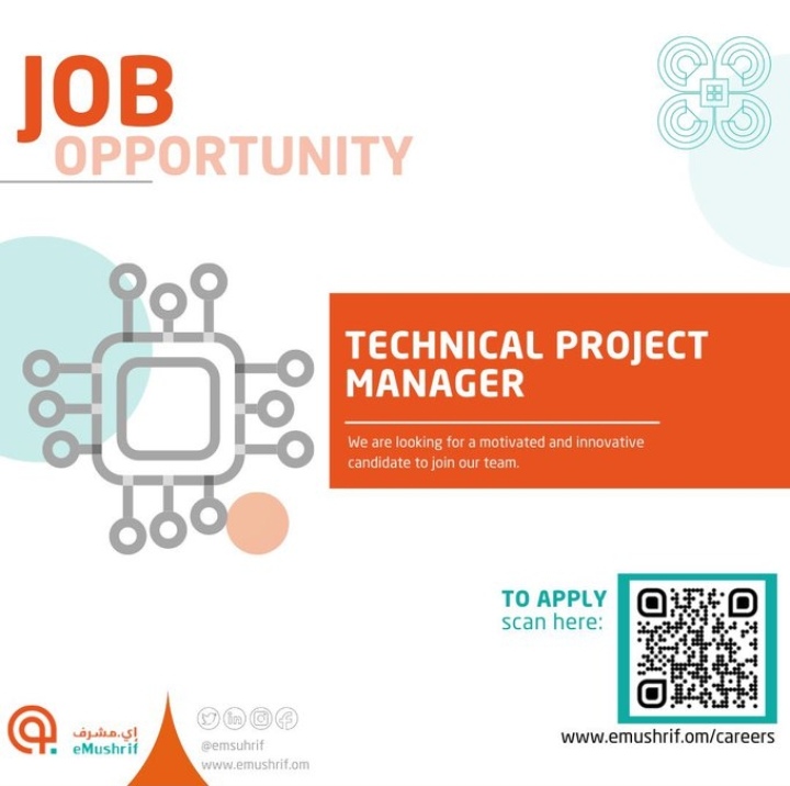 أعلنت شركة إي مشرف عن رغبتها بتعيين لديها "مدير المشاريع الفنية". للتقديم اضغط هنا لتصفح المزيد من جديد الوظائف و التدريب بالسلطنة اضغط هنا