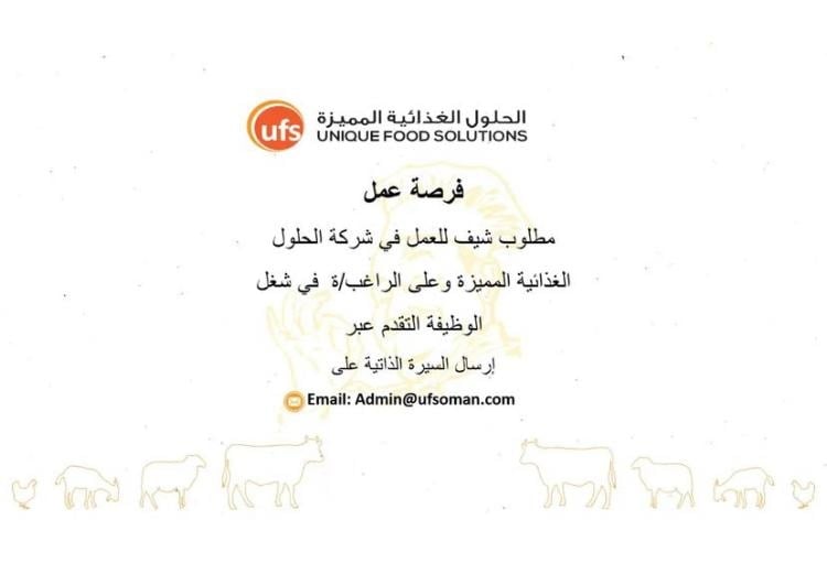 مطلوب شيف للعمل في شركة الحلول الغذائية المميزة.