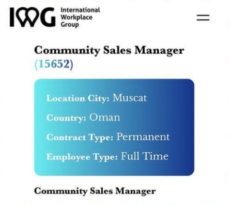 أعلنت مجموعة أماكن العمل الدولية عن رغبتها بتعيين لديها مدير مبيعات