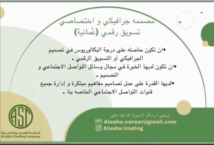 ٢. مصممة جرافيكي وإختصاصي تسويق رقمي بالشروط التالية :