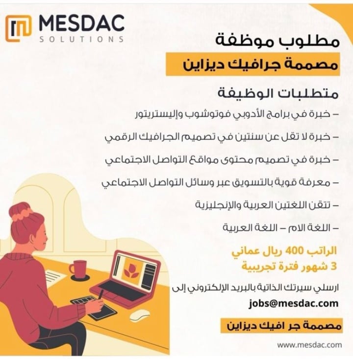 أعلنت شركة مصداق للحلول الرقمية عن رغبتها بتعيين لديها “مصممة جرافيك ديزاين”.