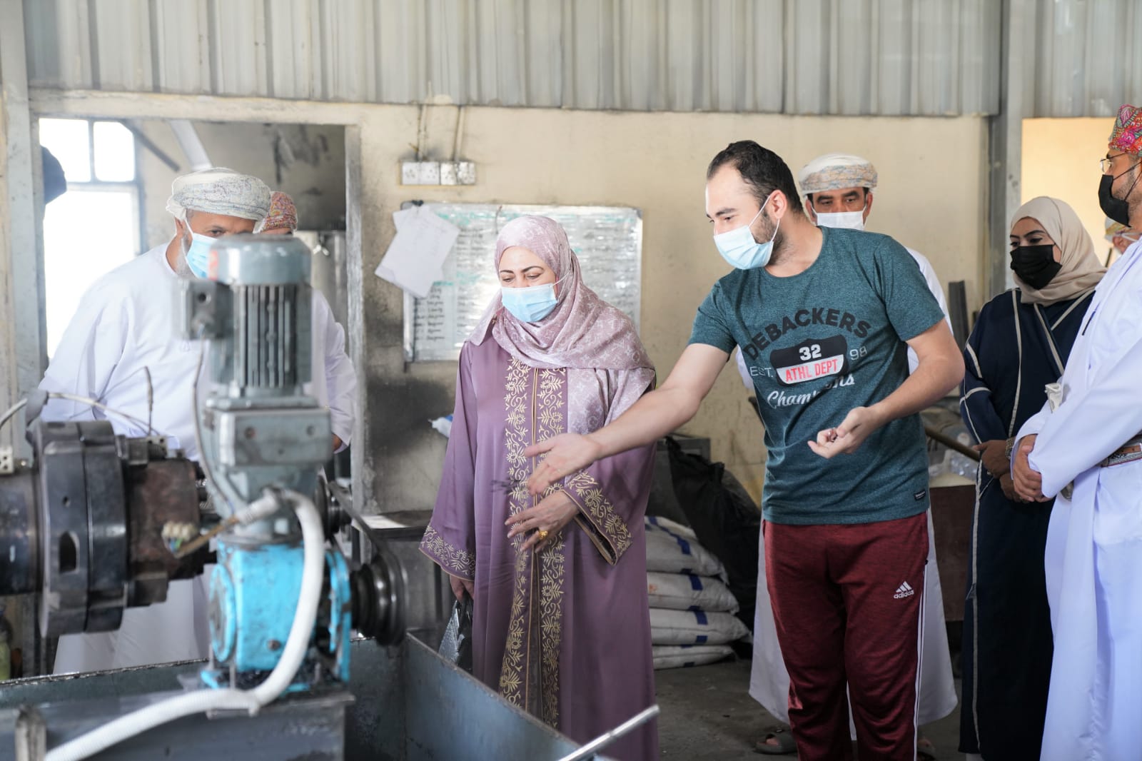 بعدها، قامت معالي الدكتورة رحمة بنت إبراهيم المحروقية، وزيرة التعليم العالي والبحث العلمي والابتكار، بجولة ميدانية في مدينة البريمي الصناعية، تضمنت زيارة لمركز الخدمات (مسار) الذي تم افتتاحه تجريبياً مؤخراً بهدف جذب الاستثمارات،ورفع مستوى الخدمات المقدمة للمستثمرين من خلال تسريع وتبسيط الإجراءات، وتعزيز العلاقات مع الشركاء لتقديم خدمات متكاملة للمستثمر، وكذلك توطيد العلاقة مع المستثمر بما يوفر بيئة اعمال آمنة، بالإضافة إلى توفير البيانات الإحصائية الدقيقة الخاصة بالمستثمرين، حيث يعد المركز نافذة استثمارية بنظام موحد لتيسير وتبسيط إجراءات حصول المستثمر على جميع الموافقات والتصاريح والتراخيص اللازمة لمشروعه الاستثماري في محطة واحد ومدة زمنية محددة، وذلك من أجل تشكيل منظومة من الخدمات المتكاملة التي يحتاجها المستثمر لتكوين وإيجاد قيمة مضافة لبيئة أعمال جاذبة للاستثمارات في سلطنة عمان، كما يساهم المركز في متابعة المشاريع المتعثرة، علاوة على تقديم المركز لخدمات القيمة المضافة مثل الاستشارات، التمويل والبنوك، الفحص الطبي، البريد، والتسويق والترويج، كما قامت معاليها بزيارة مصنع العبوة الملكية لزيوت التشحيم، والذي بدأ الإنتاج في شهر أبريل 2017، والتسويق لمنتجاته في السوق المحلي بعد الحصول على الاعتمادات العالمية لجودة المنتج، من معهد أمريكي متخصص في محركات البترول والديزل، ومعتمد من المعهد الأوروبي، ومعتمد من شركة فولفو ورينولت ومرسيدس وبورش وماك، وحاصل على شهاده الأيزو، وحصلت منتجات المصنع على اعتمادات عالمية للجودة، مما سهل دخولها إلى الأسواق الإقليمية والعالمية، حيث يعد المصنع الوحيد في مجال الزيوت الذي يصدر زيوت محركات إلى أسواق الولايات المتحدة الأمريكية، وكندا، وبيرو، وفيتنام، وقطر، والسعودية، وأستراليا، وباكستان، وبنجلاديش، وأفغانستان، واليمن، وليبيا، والمغرب، والكاميرون، وغانا، وغينيا، وسيراليون، وتنزانيا، والفلبين، والعراق، وسوريا، ولبنان، وساحل العاج. ويقوم المصنع حاليا بإنتاج 38 نوعا من الزيوت لجميع أنواع المحركات العاملة بالبترول أو الديزل والمولدات الكهربائية، بالإضافة إلى إنتاج 4 أنواع من الشحوم، و15 نوعا من فلاتر السيارات المستوردة بماركة المصنع، والتي تساعد في الدعاية للمنتج. كما قامت معاليها بزيارة شركة قلاع الباطنة للتجارة التي تأسست عام 2006، والمتخصصة في صنع الأنابيب البلاستيكية، حيث تقوم الشركة بإنتاج أنابيب البلاستيك، وأنابيب المجاري وأنابيب الري والأنابيب متعددة الاستخدام، بالإضافة إلى صنع البلاستيك، (اللدائن) في أشكالها الأولية، وصنع قوالب وشرائح ورقائق الترشيح من عجينة الورق.