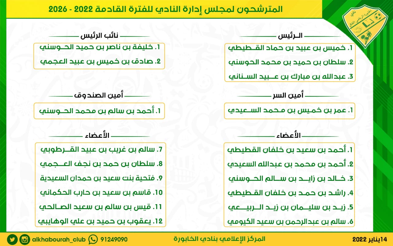 ويأمل خميس القطيطي أن يتحقق لناديه النجاح في مسيرته بقيادته أو بقيادة أي مرشح آخر، مؤكدا أن رسالته وعهده لناديه ثابت في حال نجاح أي مرشح آخر، متنميا التوفيق والنجاح لنادي الخابورة في مسيرته الادرية القادمة .