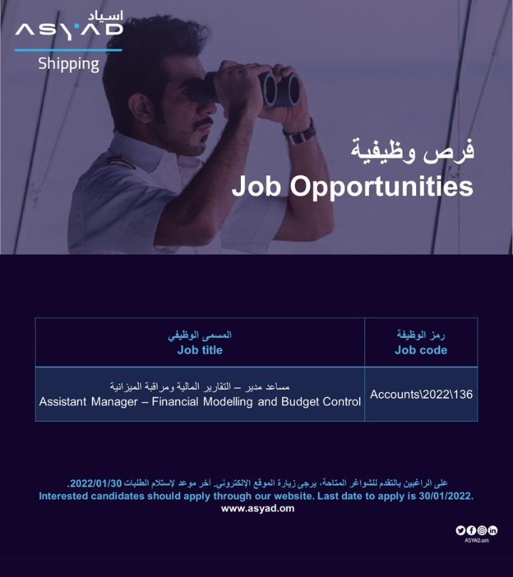 أعلنت مجموعة أسياد عن رغبتها بتعيين لديها مساعد مدير – التقارير المالية ومراقبة الميزانية.