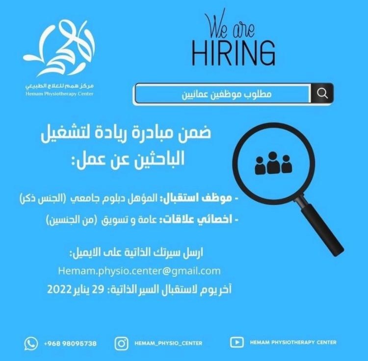 أعلن مركز همم للعلاج الطبيعي عن رغبته بتعيين لديه