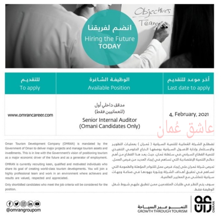 الشركة العمانية للتنمية السياحية (مجموعة عمران) – وظيفة شاغرة