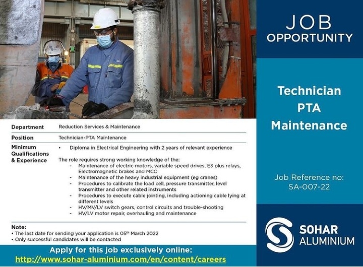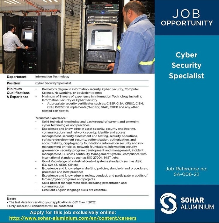 أعلنت شركة صحار ألمنيوم عن رغبتها بتعيين لديها :