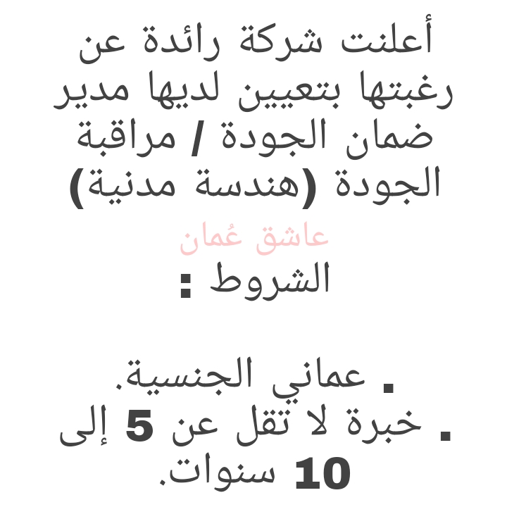 للتواصل ارسال السيرة الذاتية : A01hmed@gmail.com لتصفح المزيد من جديد الوظائف و التدريب بالسلطنة اضغط هنا