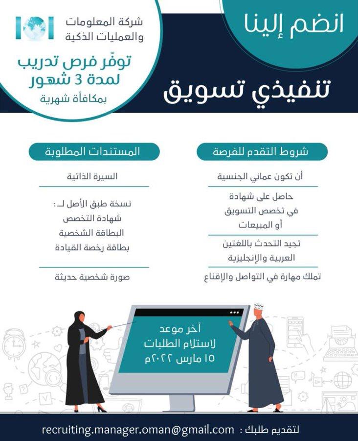 أعلنت شركة المعلومات والعمليات الذكية عن فرص تدريب كتنفيذي تسويق .
