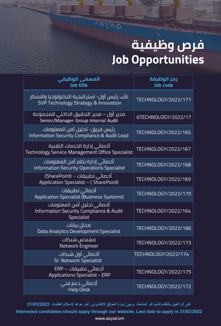 أعلنت مجموعة أسياد عن رغبتها بتعيين لديها :
