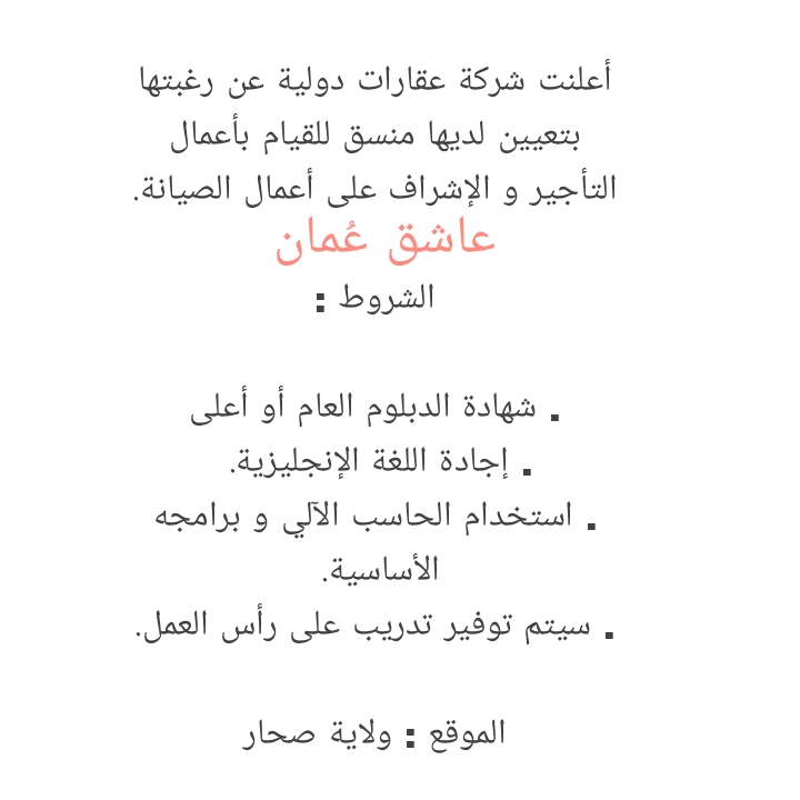 لتصفح المزيد من جديد الوظائف و التدريب بالسلطنة اضغط هنا