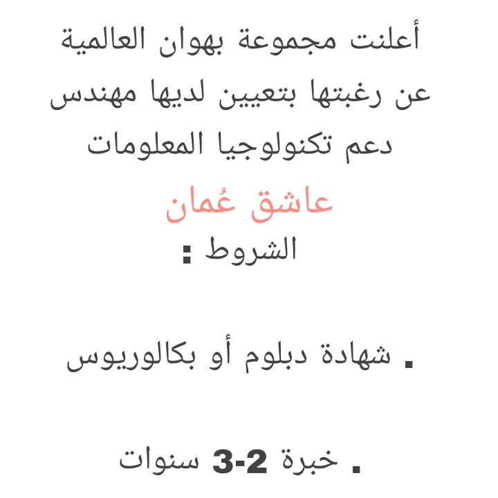 للتواصل وارسال السيرة الذاتية : Maather@Sbigh.com لتصفح المزيد من جديد الوظائف و التدريب بالسلطنة اضغط هنا
