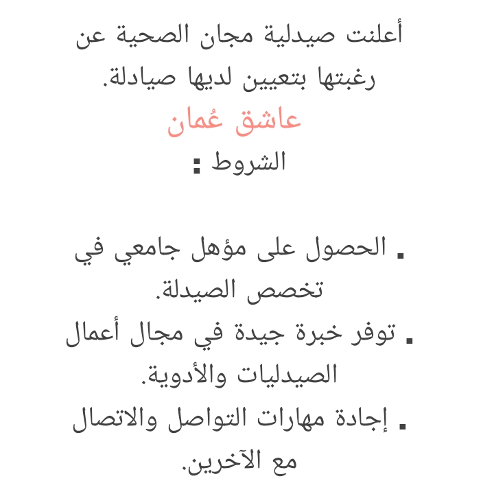 للتواصل وارسال السيرة الذاتية : mhshealth.jobs@gmail.com لتصفح المزيد من جديد الوظائف و التدريب بالسلطنة اضغط هنا