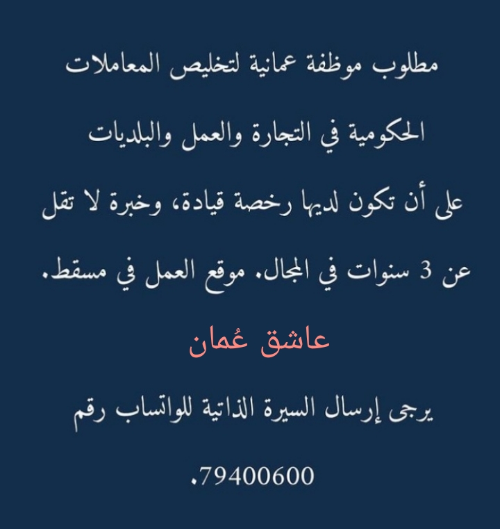 شركة رائدة في مسقط – وظيفة شاغرة