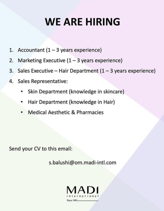 أعلنت شركة ماضي الدولية عن رغبتها بتعيين لديها :