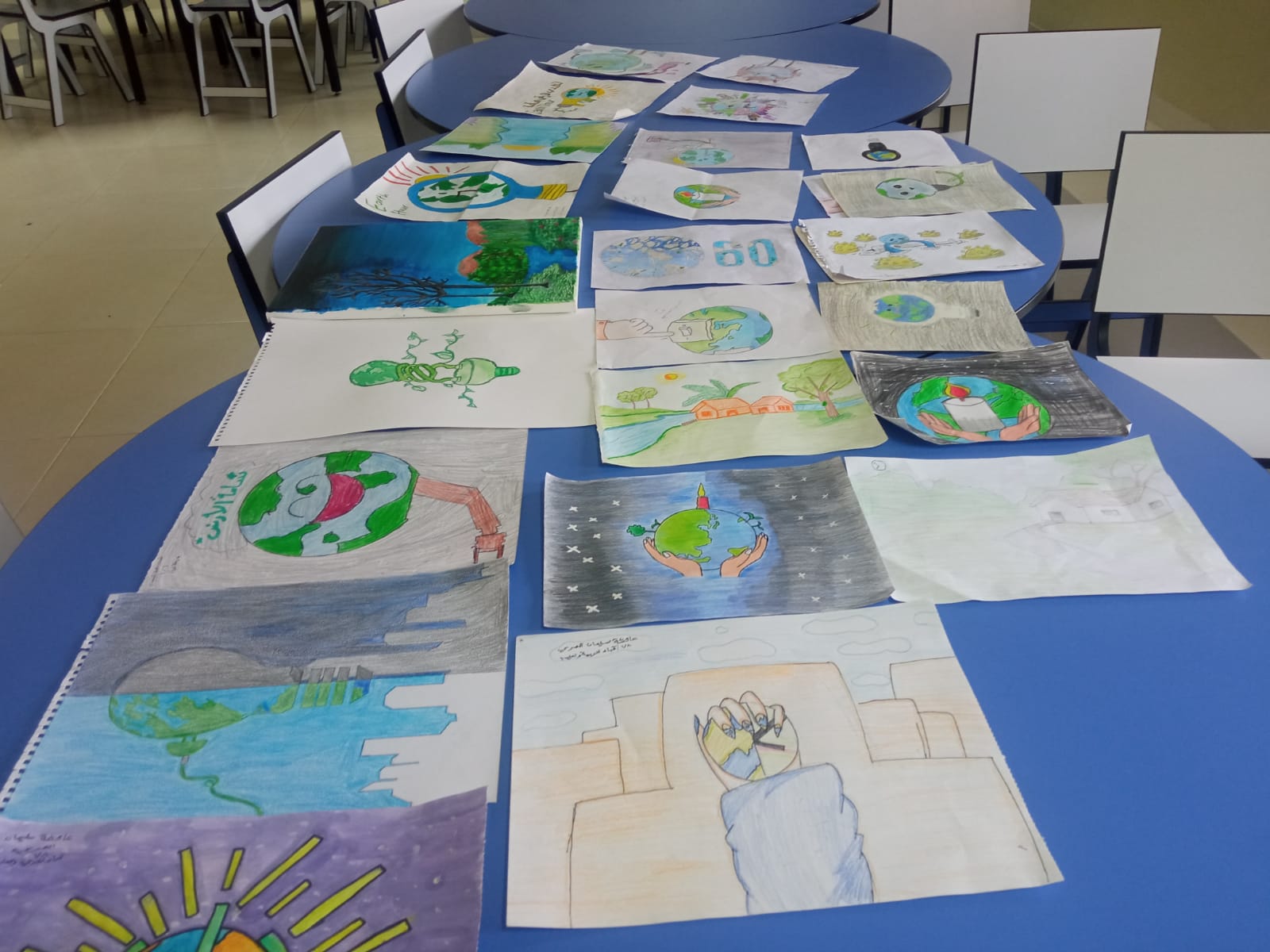 وفي ختام الفعالية وبهدف إطفاء روح المرح والفائدة في نفوس الطلبة تم تنفيذ ورشة رسم متعلقة بهذه الساعة وتشجيع مواهبهم والإشادة بها.