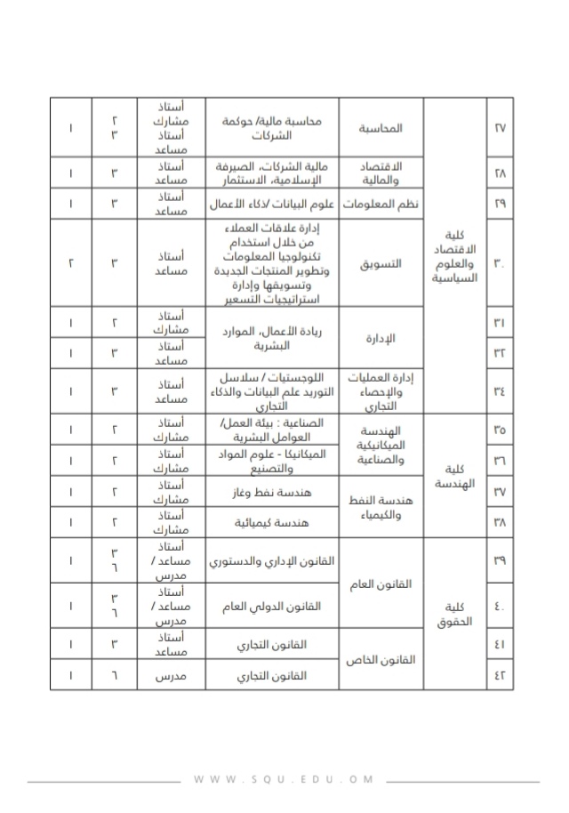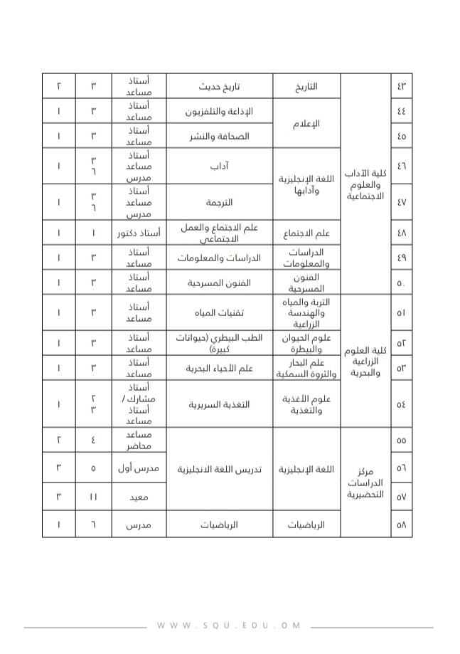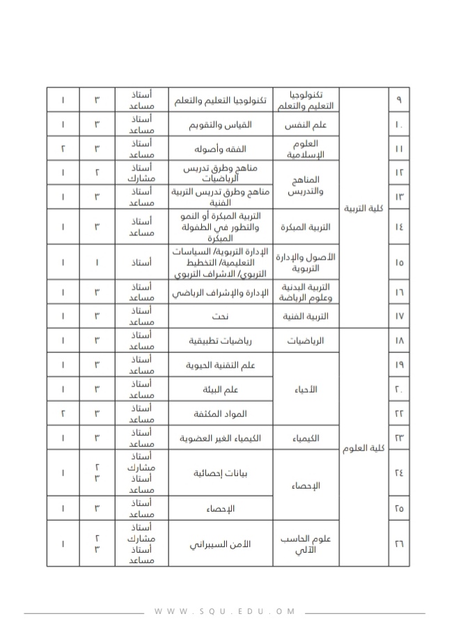 أعلنت جامعة السلطان قابوس عن توفر عدد من الوظائف الأكاديمية والبحثية الشاغرة للعمانيين.