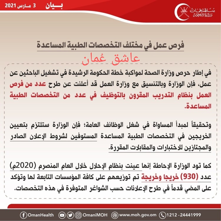 لتصفح المزيد من جديد الوظائف و التدريب بالسلطنة اضغط هنا