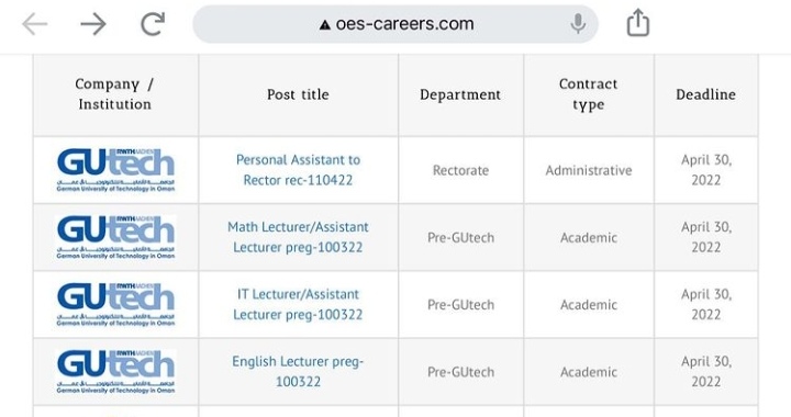 أعلنت الجامعة الألمانية للتكنولوجيا في عمان عن رغبتها بتعيين لديها :