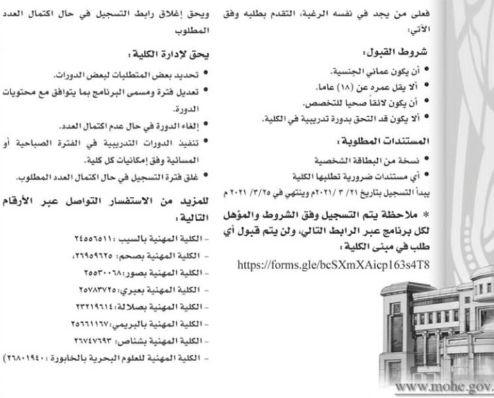 لتصفح المزيد من جديد الوظائف و التدريب بالسلطنة اضغط هنا
