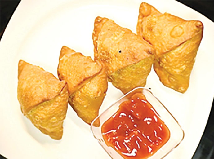 Shape the samosa such that it sits on its base.