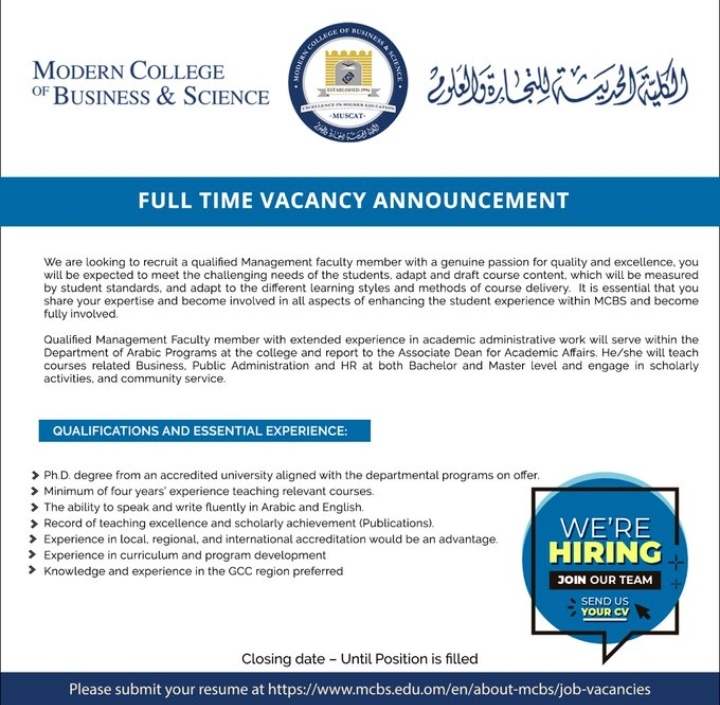 الكلية الحديثة للتجارة والعلوم تعلن وظيفة شاغرة 3