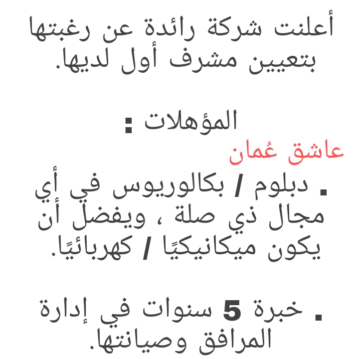 للتواصل وارسال السيرة الذاتية : Shihab.g@mhd.co.om لتصفح المزيد من جديد الوظائف و التدريب بالسلطنة اضغط هنا