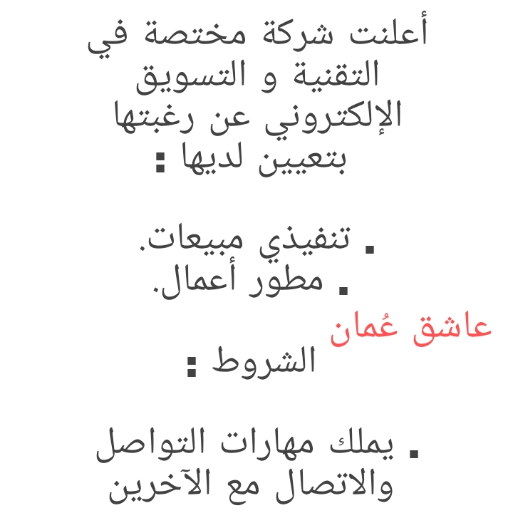 للتواصل وارسال السيرة الذاتية : ab2zz@hotmail.com لتصفح المزيد من جديد الوظائف و التدريب بالسلطنة اضغط هنا