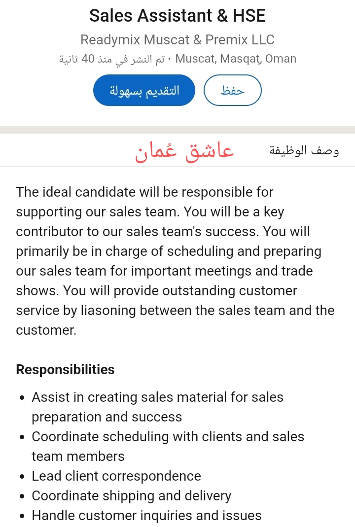 شركة Readymix Muscat – وظيفة شاغرة