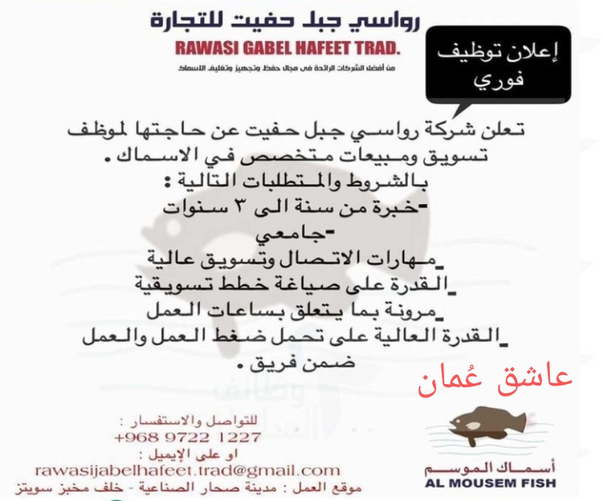 شركة رواسي جبل حفيت للتجارة – وظيفة شاغرة