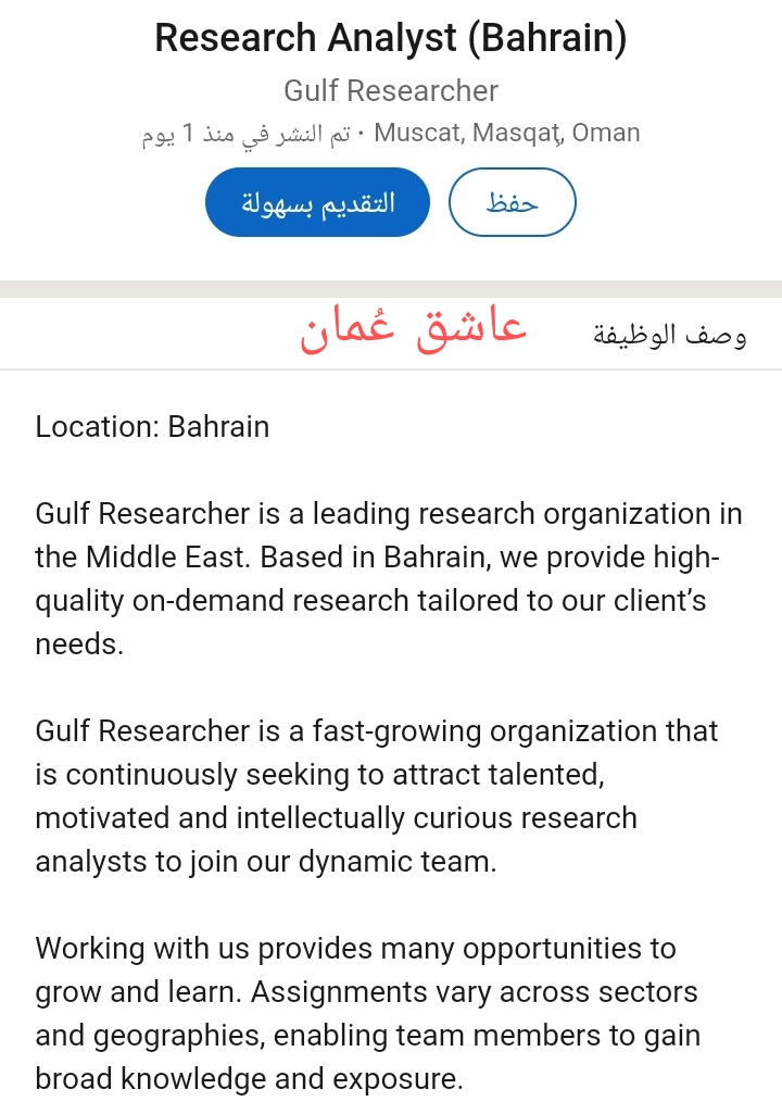 شركة Gulf Researcher – وظيفة شاغرة