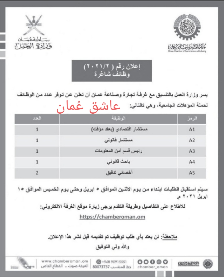 غرفة تجارة و صناعة عمان – وظائف شاغرة