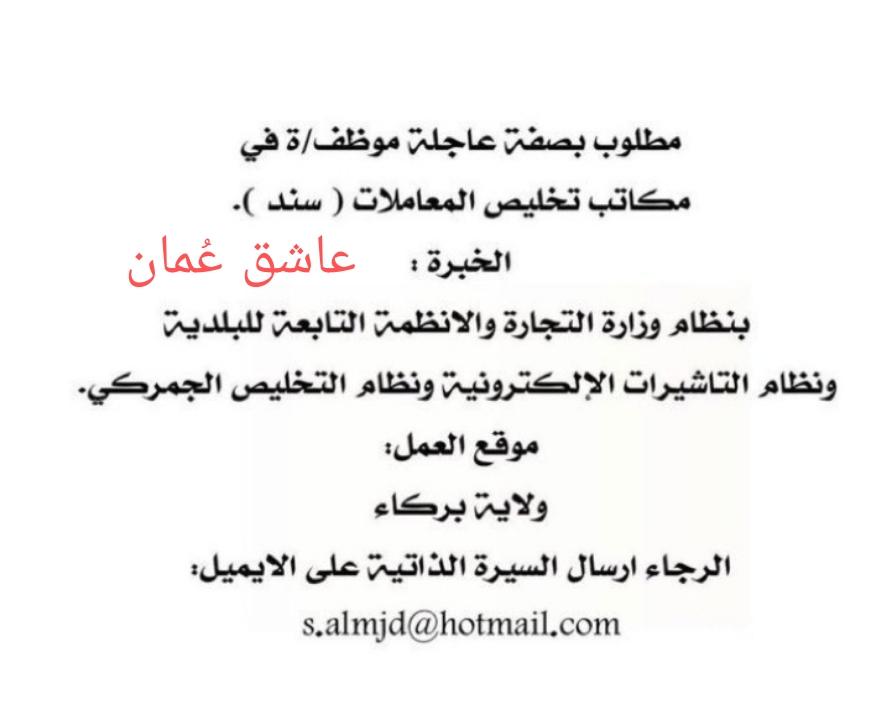 مكتب سند للخدمات في بركاء – وظيفة شاغرة