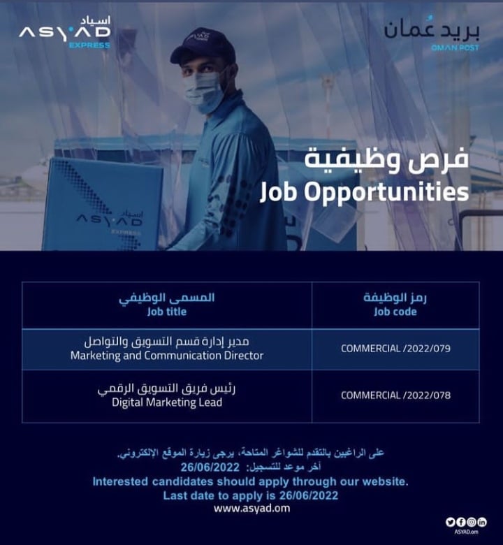 أعلنت مجموعة أسياد عن رغبتها بتعيين لديها :