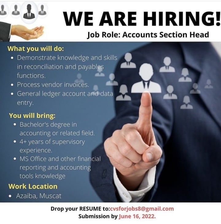 أعلنت شركة في مسقط عن رغبتها بتعيين لديها رئيس قسم الحسابات.