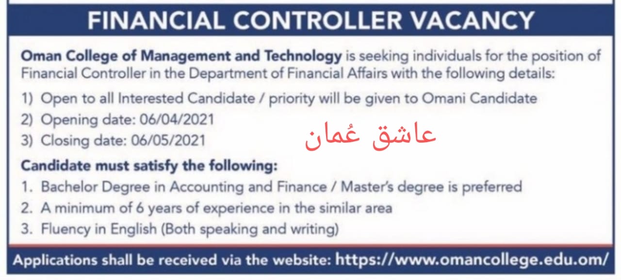كلية عمان للإدارة و التكنولوجيا – وظيفة شاغرة