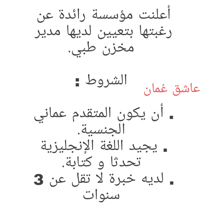 للتواصل وارسال السيرة الذاتية : info.omanjob@gmail.com لتصفح المزيد من المزيد من جديد الوظائف و التدريب بالسلطنة اضغط هنا